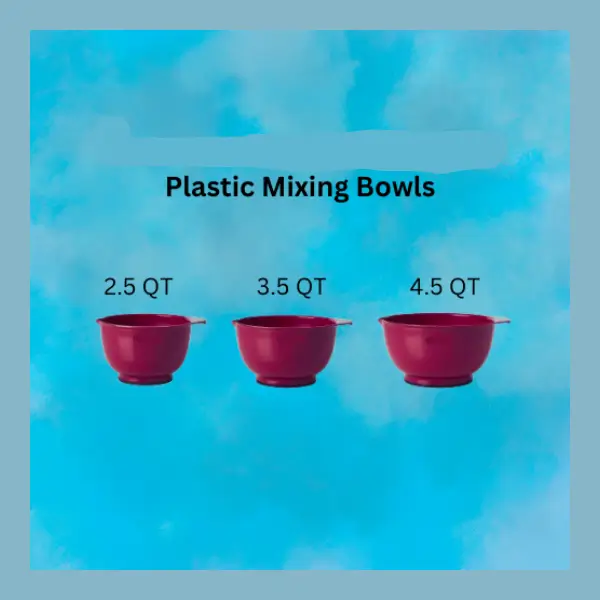 Each mixing bowl includes a non-slip base for stability while blending and a pour spout to limit spills. They are produced using sturdy plastic, lightweight at only 1 pound each, and simple to store together when not being used.